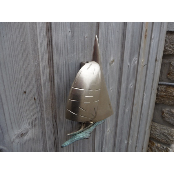Beau heurtoir de porte Voilier sous spinnakerLaiton nickelé