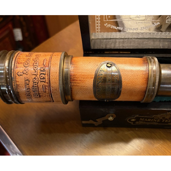 C'est une réédition très soignée d'un modèle anglais de longue vue de 1915. Instrument de navigation traditionnel du bord, elle est fonctionnelle et équipée d'un pare soleil rétractable . Elle a une portée de 3 kilomètres, utilisée pour le repérage des balises lors de l'arrivée au port