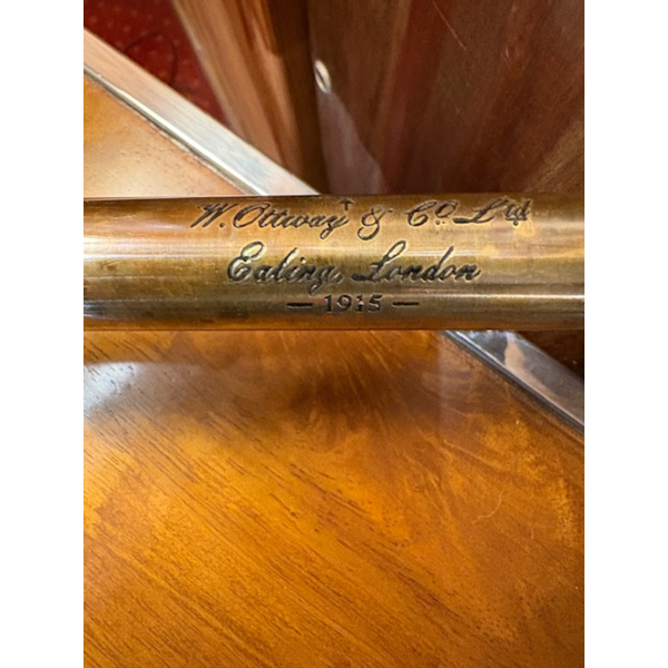 Le nom du fabricant Ottway London 1915 est gravé sur la longue vue et sur une plaque en laiton sur le coffret.